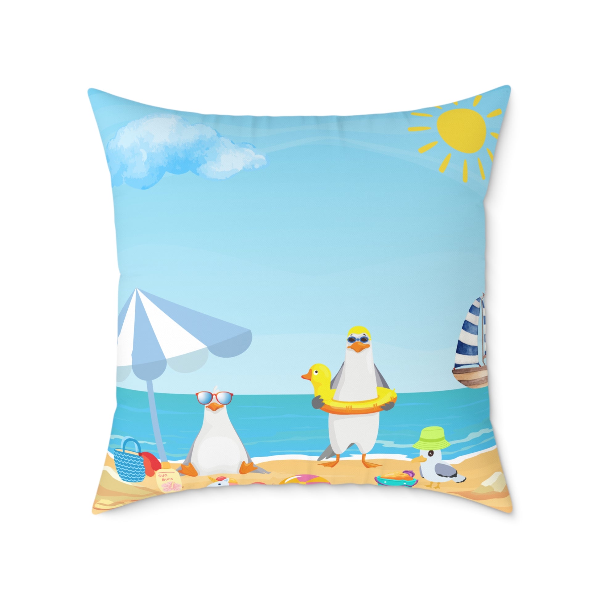 Beach Vibes Square Poly Canvas Pillow | Coastal Decor, Summer Home Accents, Nautical Gift, Fun Throw Pillow, Indoor/Outdoor Cushion