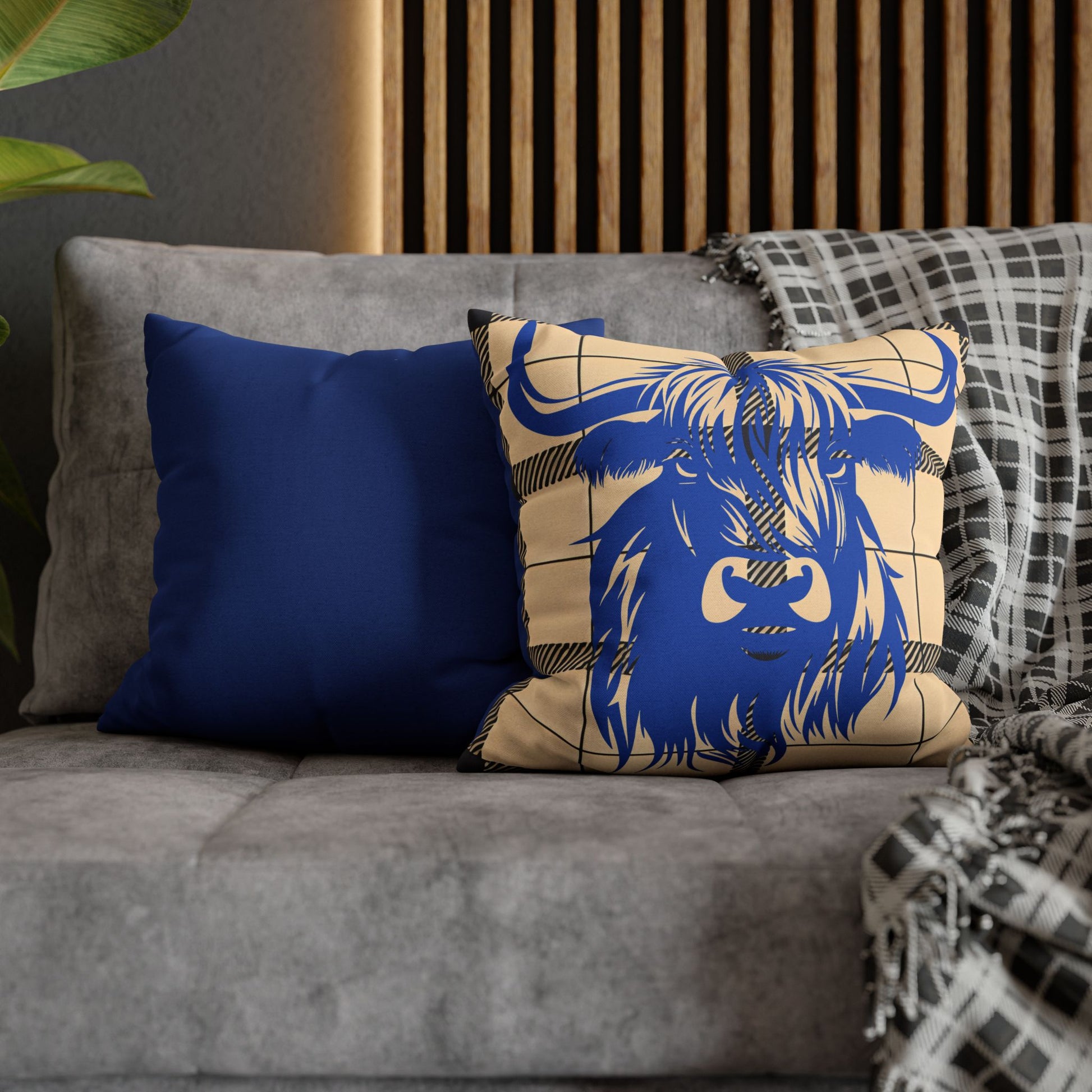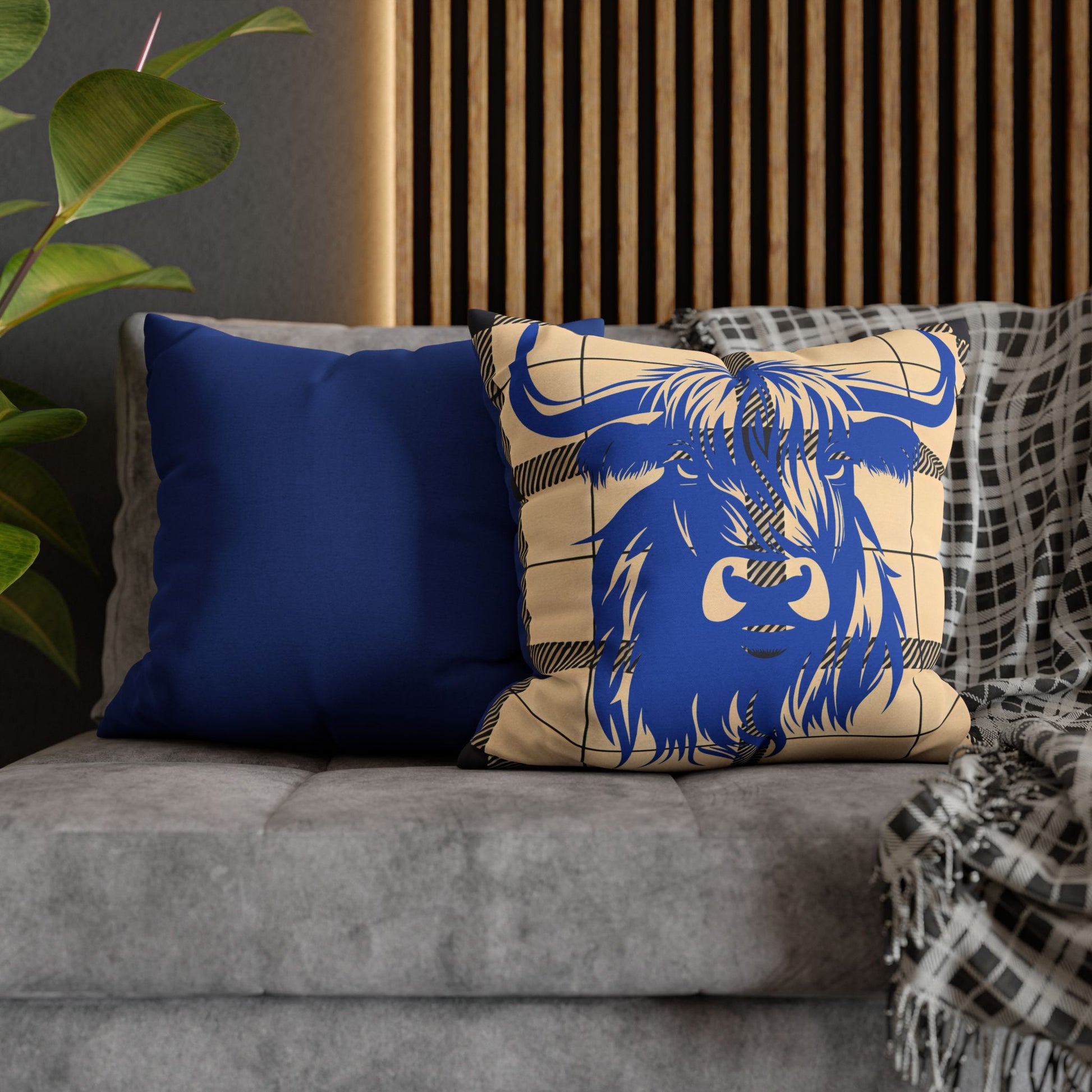 Blue Highland Cow Pillowcase, Rustic Home Decor, Farmhouse Style, Cozy Living Room, Gift for Cow Lovers, Unique Cushion Cover