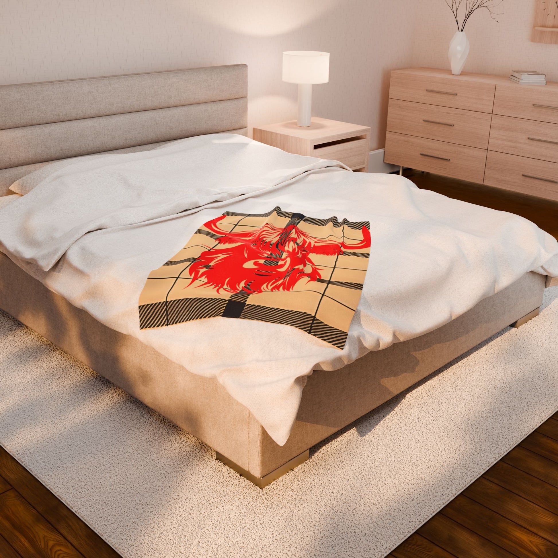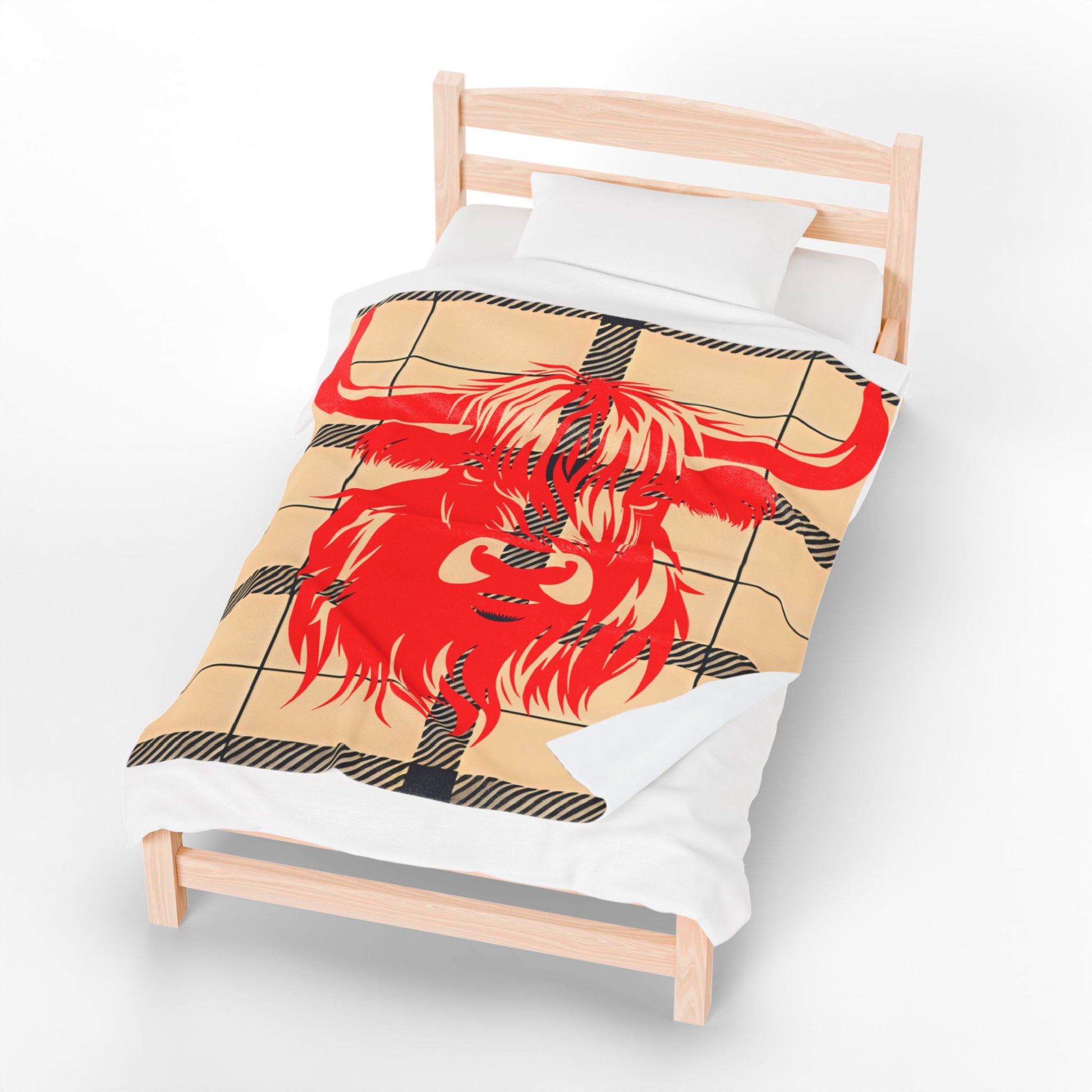 Bold Highland Cow Velveteen Plush Blanket, Cozy Home Decor, Gift for Animal Lovers, Perfect for Relaxation, Camping, Winter Nights