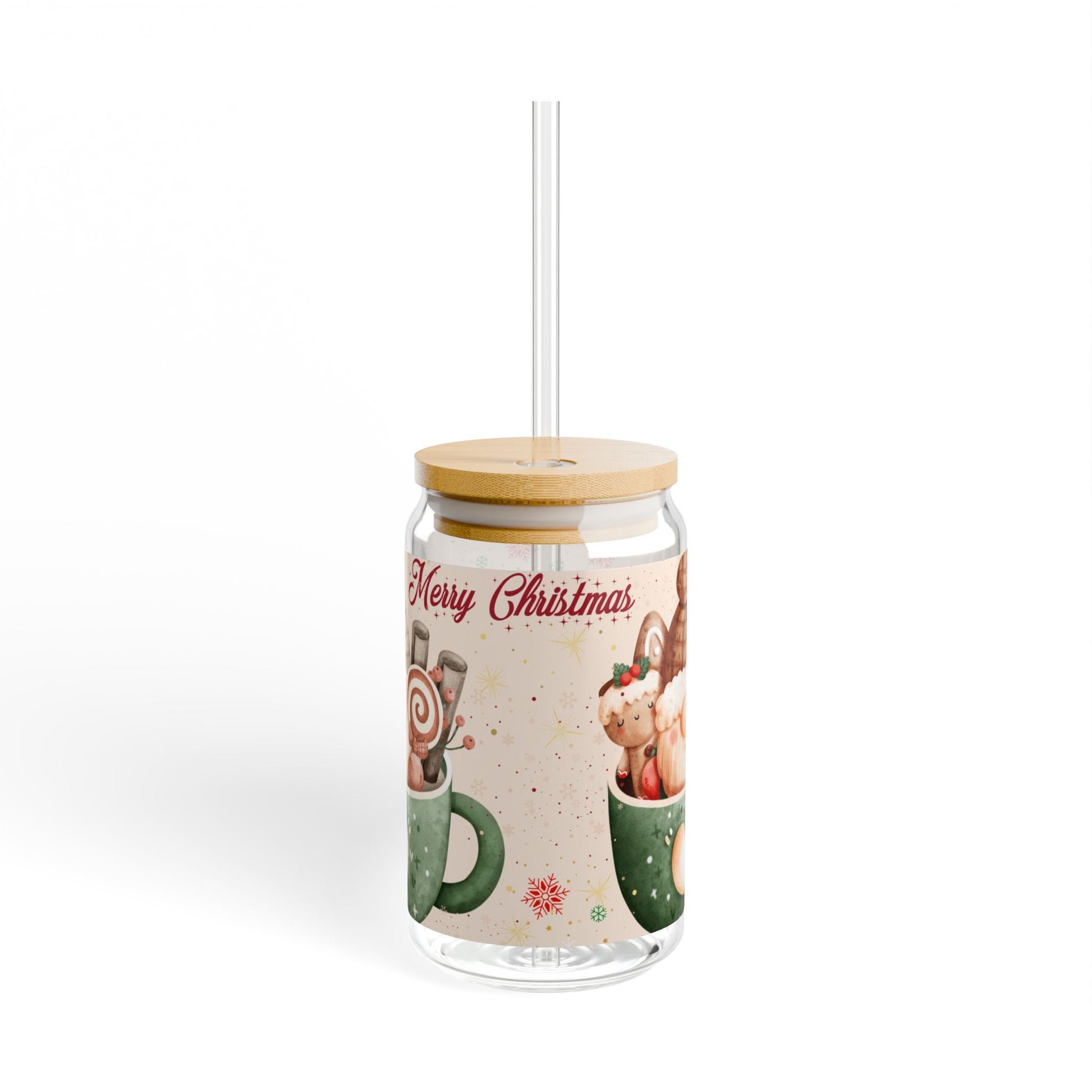 Festive Sipper Glass with Holiday Design, Christmas Drinkware, Cute Gift for Winter Parties, Holiday Decor, Eco-Friendly Beverage Container