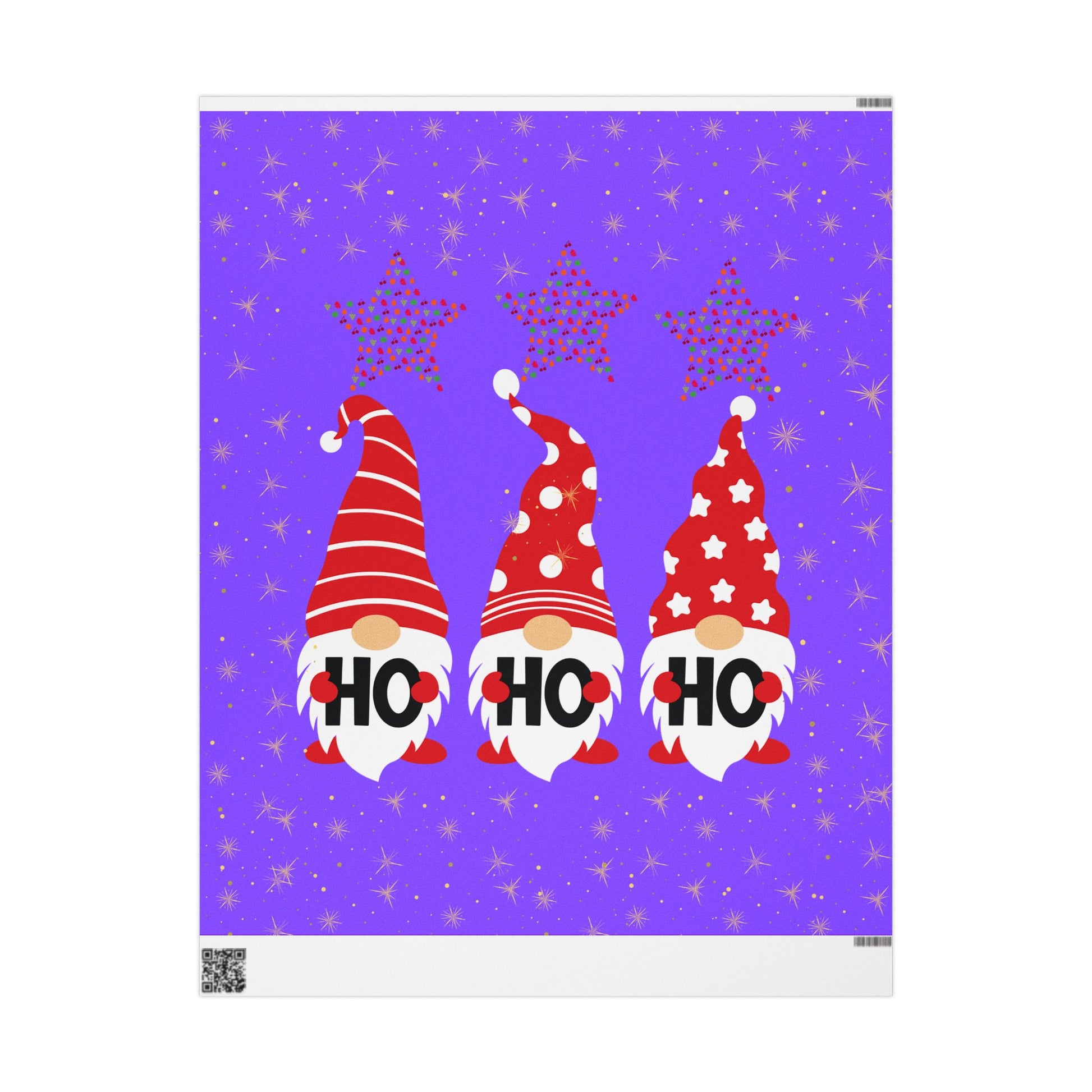 Festive Wrapping Paper with Gnomes & Stars, Holiday Gift Wrap, Christmas, Birthdays, DIY Crafts, Party Supplies, Ho Ho Ho Design