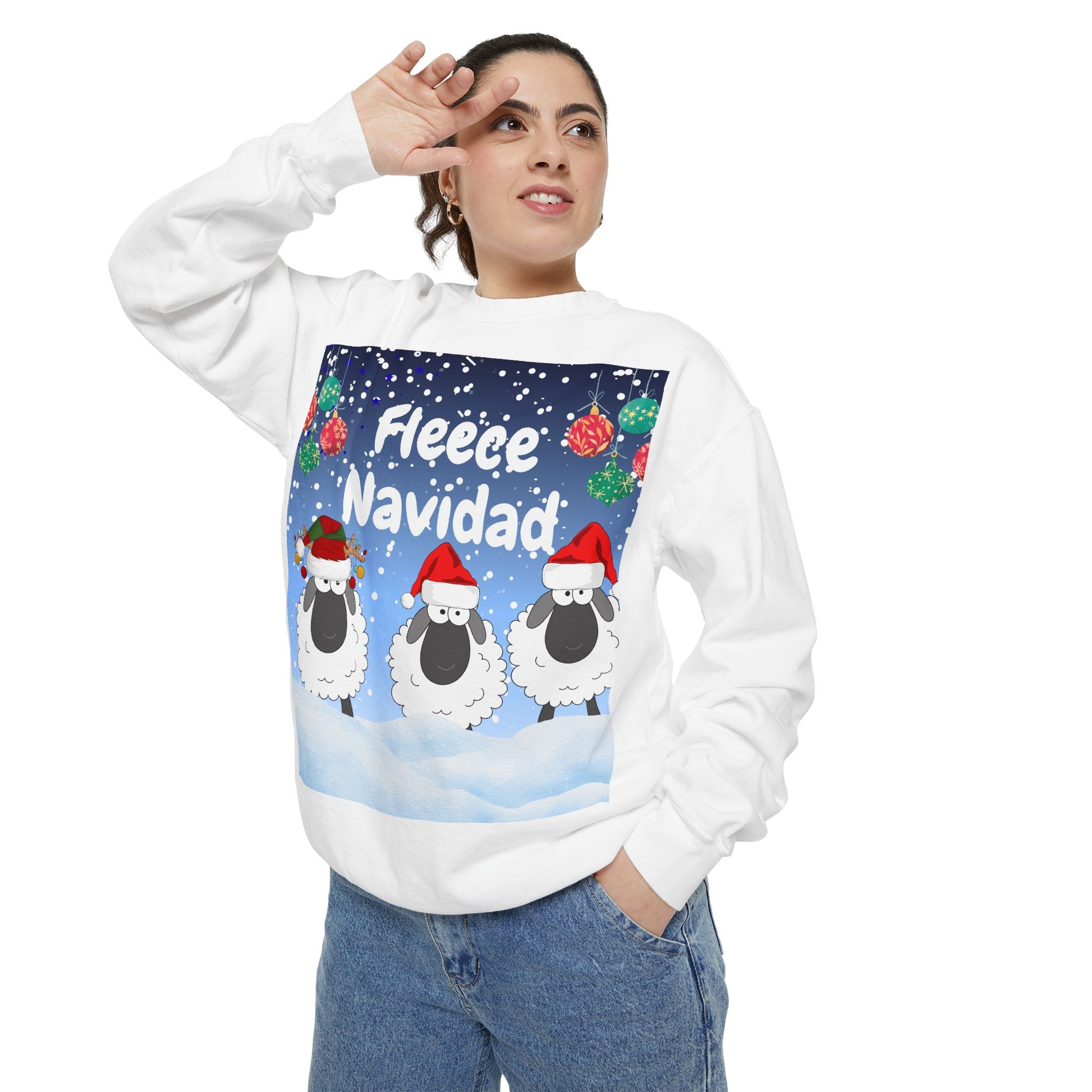 Fleece Navidad Sweatshirt - Unisex Christmas Gift with Playful Sheep Design
