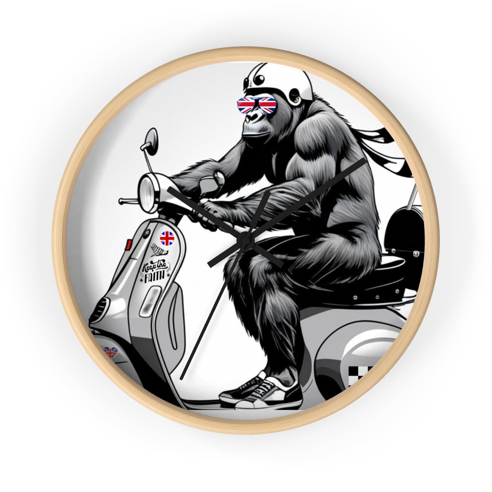 Gorilla Scooter Wall Clock - Fun Home Decor, Unique Gift for Animal Lovers, Retro Vibes, Motorcycle Decor, Office Wall Art