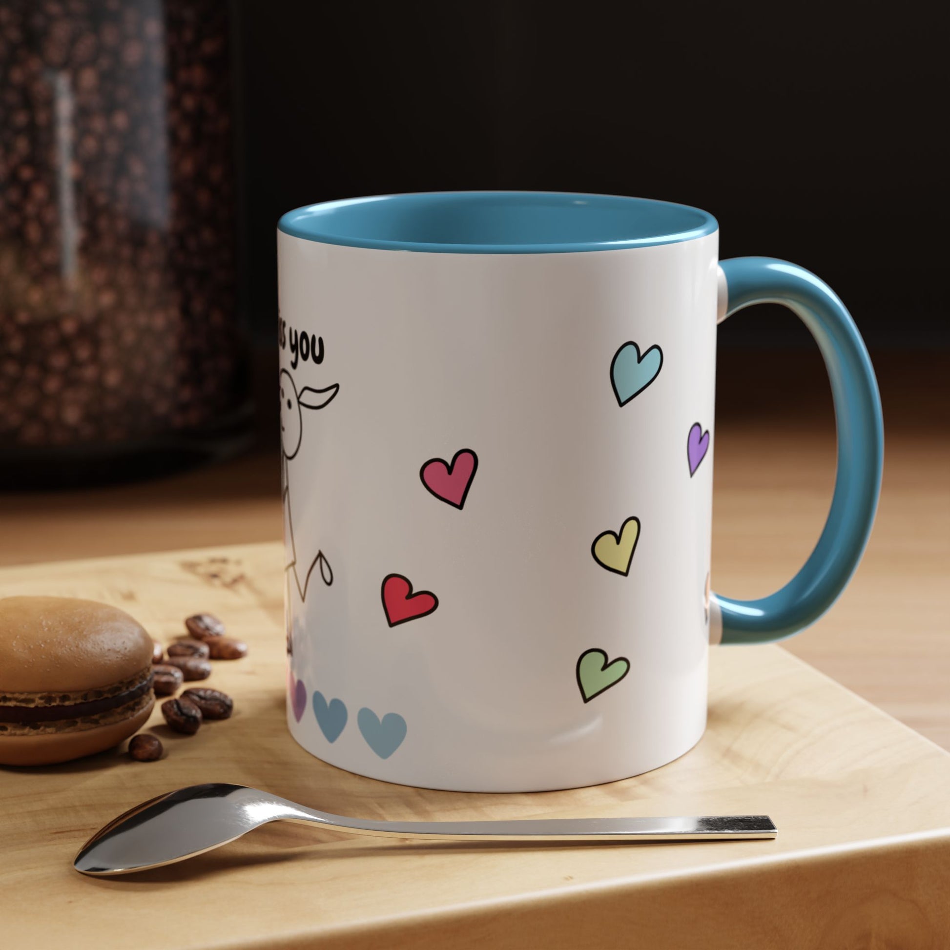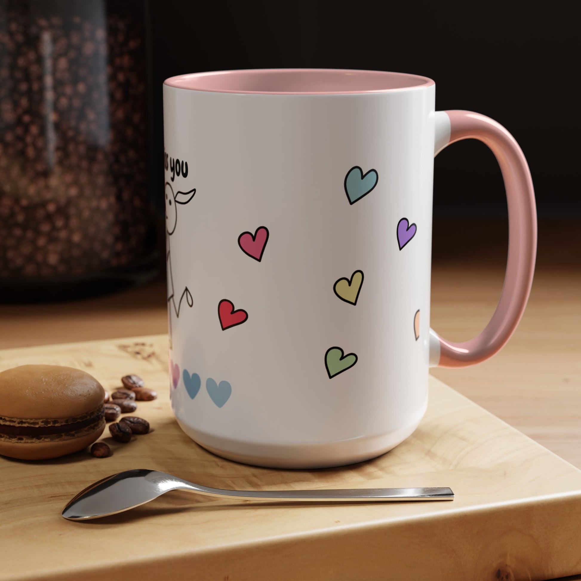 Brighten your mornings with this charming Accent Coffee Mug. Featuring a playful design with hearts and a cheerful character, it evokes feelings of warmth and connection. Perfect for sipping your favorite brew, this mug makes every sip a delightful experience. Ideal for friends, family, or anyone who enjoys a personal touch in their daily routines. Celebrate special occasions like birthdays, anniversaries, or simply express your sentiments on a casual day. This mug is a thoughtful gift that resonates with both whimsical and heartfelt vibes.