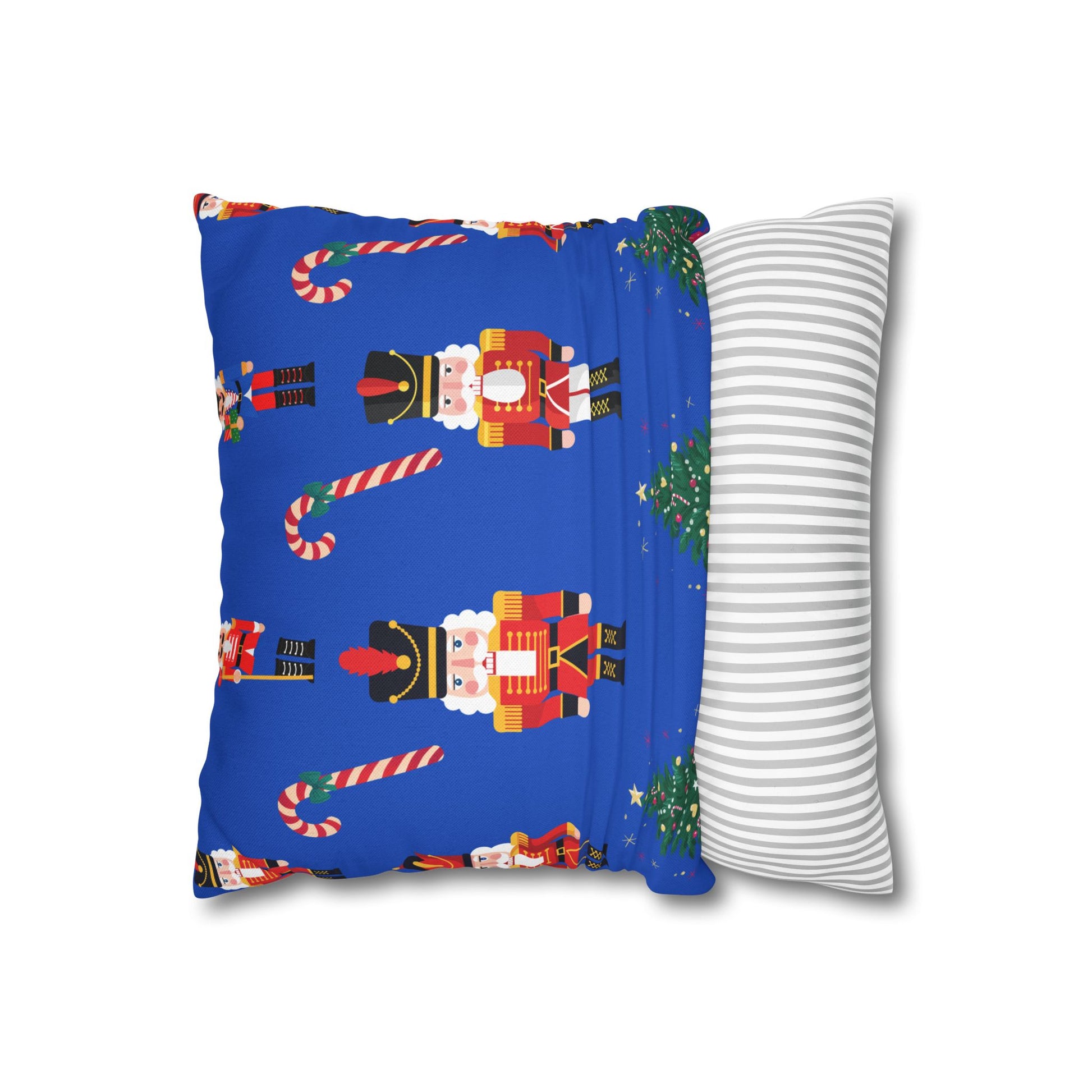 Bring a playful, nostalgic holiday spirit to your living room with this square throw pillow cover. The vivid royal-blue background sets off cheerful nutcracker soldiers, candy canes, and decorated trees in a bright, toy-like pattern that feels like stepping into a classic holiday storybook. The spun polyester fabric holds its shape and color through seasons, while the hidden zipper keeps the silhouette clean. Slip this double-sided cover over your favorite insert to add a pop of color and a whimsical, festive vibe to sofas, armchairs, or bedroom nooks — great for cozy evenings, cookie-baking sessions, and relaxed holiday visits with friends and family.