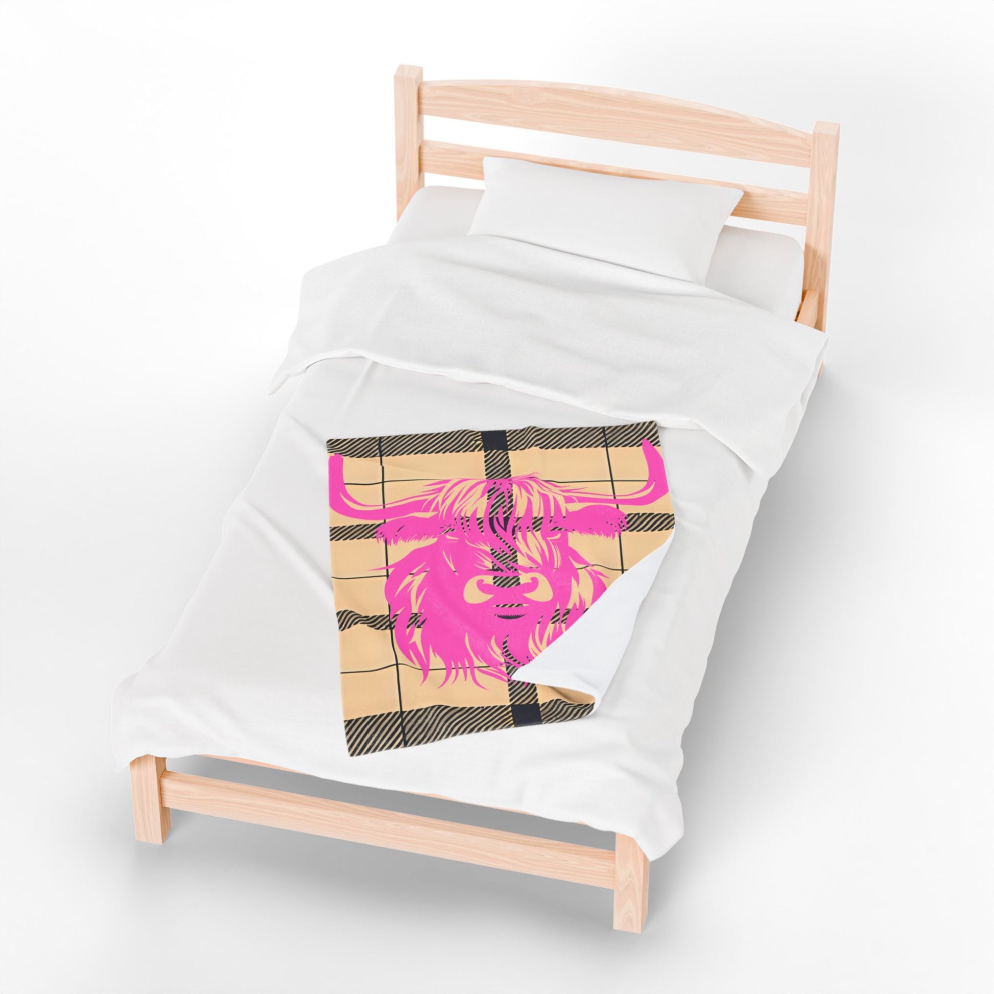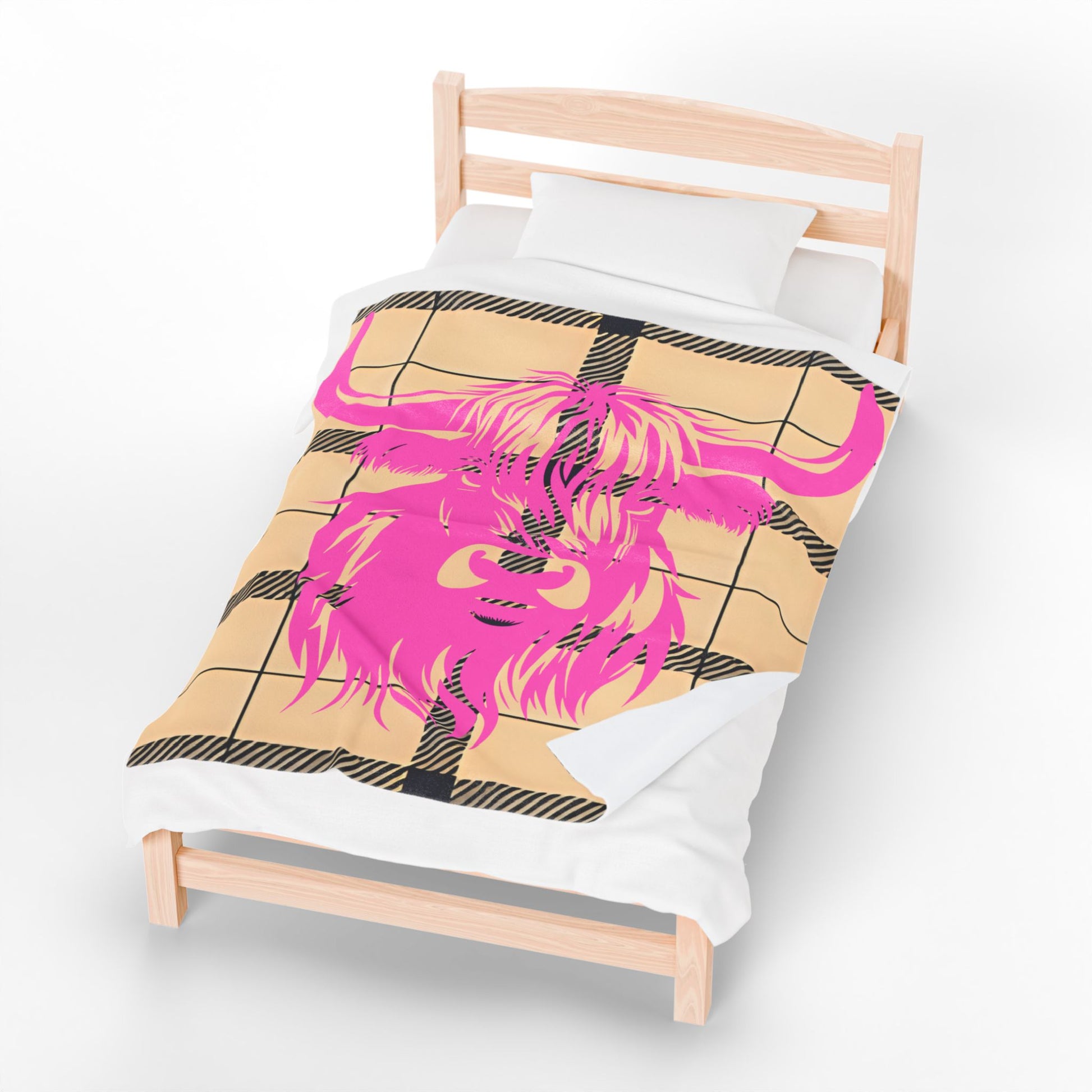 Pink Highland Cow Blankets, Cozy Velveteen Throw, Unique Home Decor, Gift for Animal Lovers, Warm Plush Blanket