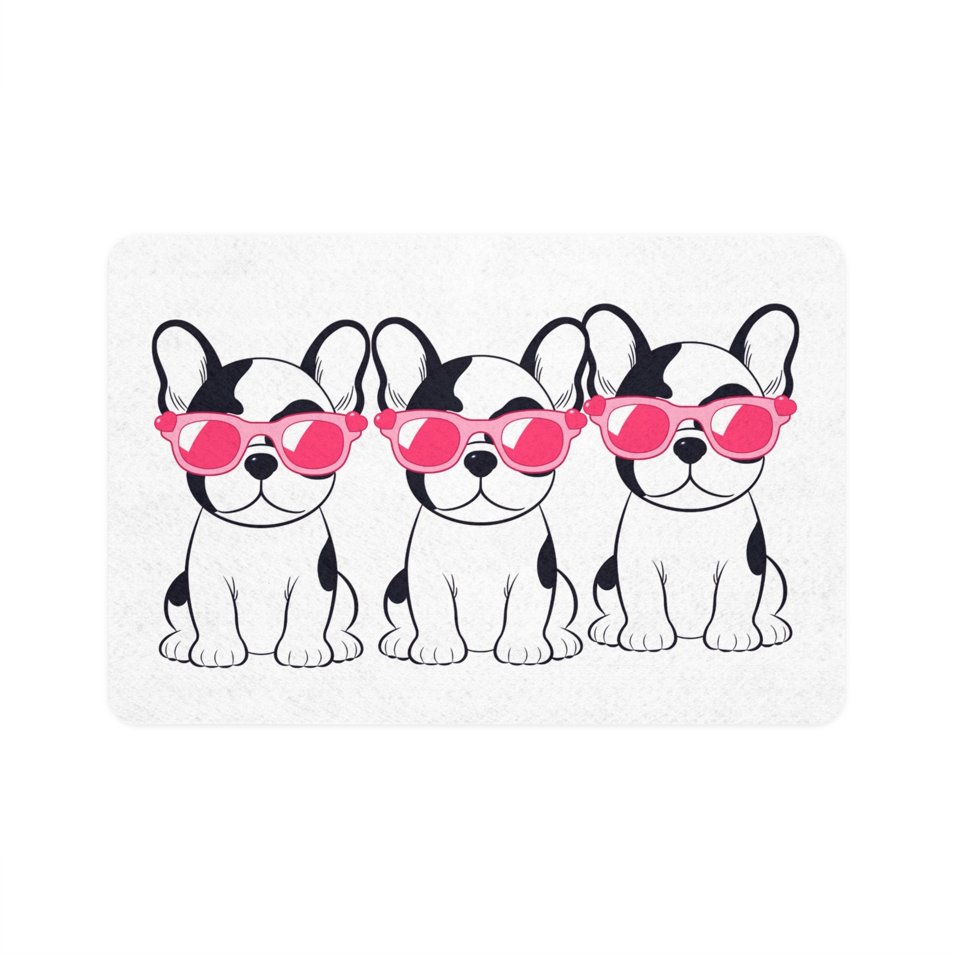 Elevate your pet's dining experience with this vibrant Pet Food Mat. Featuring adorable, illustrated French bulldogs in stylish sunglasses, this mat brings a fun and playful vibe to your home. Its colorful design adds personality to any kitchen or feeding area, making mealtime enjoyable for you and your furry friend. Perfect for pet parents who want to combine functionality with flair, this mat is a must-have. Ideal for dog lovers and pet enthusiasts, it also makes a delightful gift for new pet owners during holidays like Christmas, or celebrations like adopt-a-pet day. Durable and stylish, it's designed to enhance everyday life with your beloved pets.