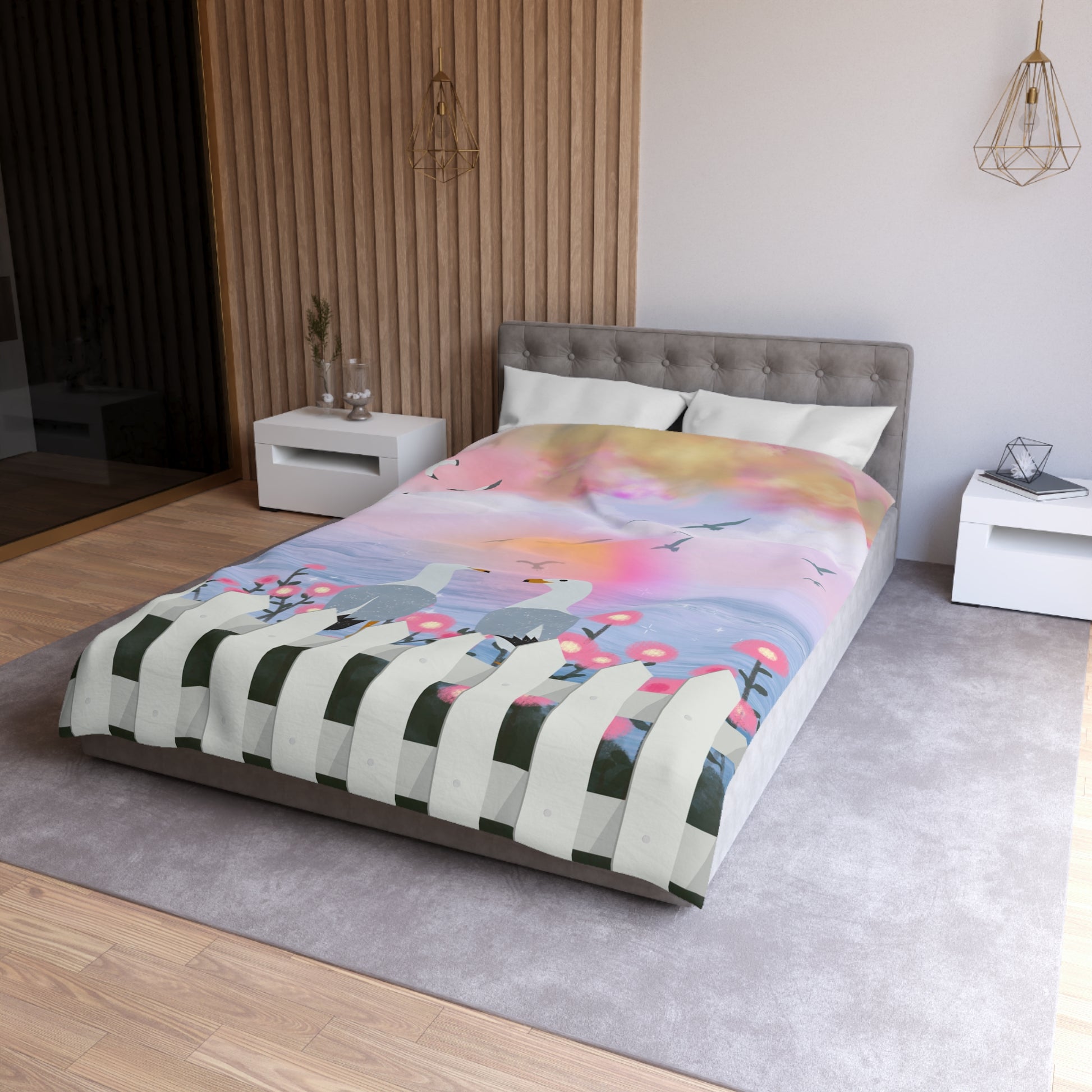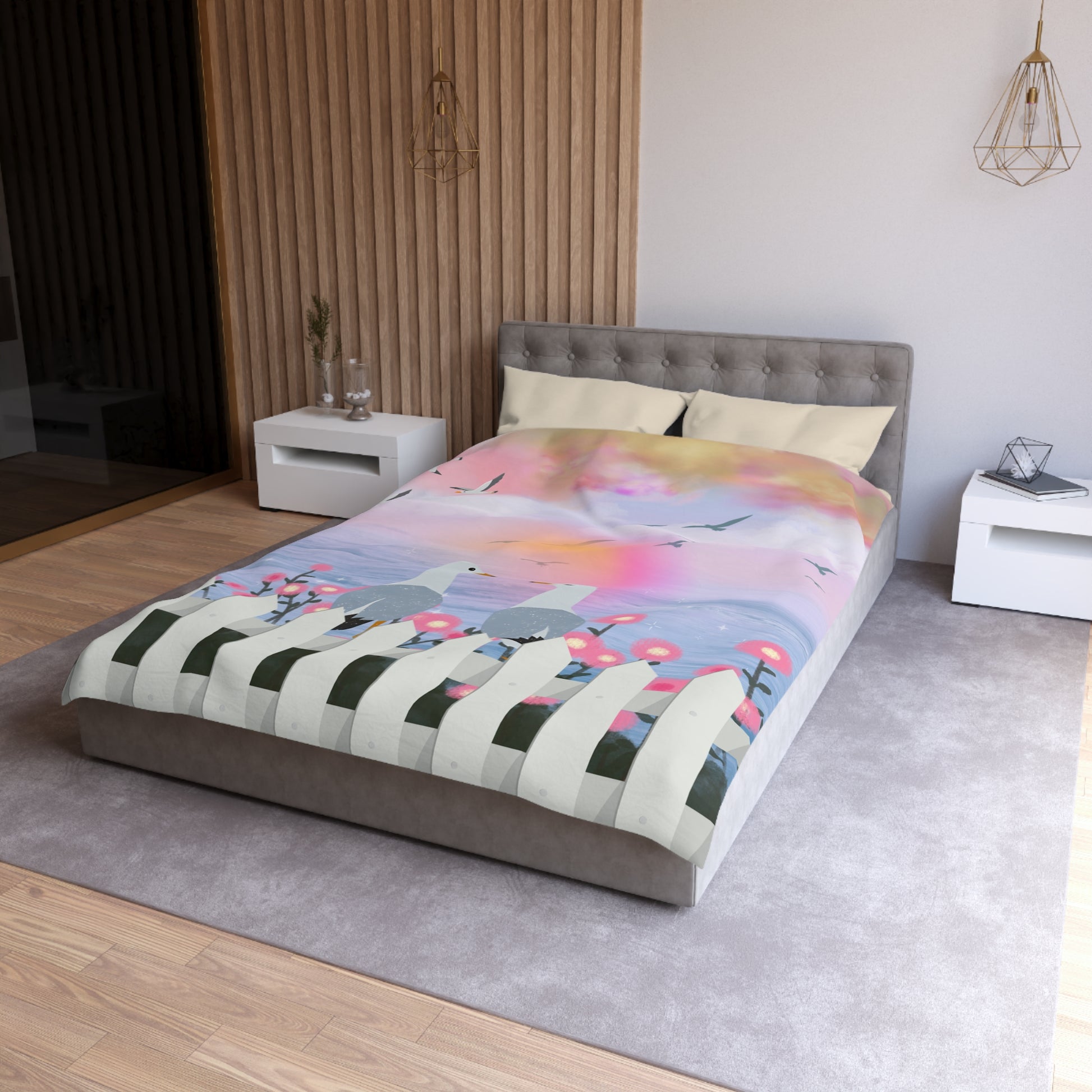 Romantic Coastal Microfiber Duvet Cover, Beach Decor, Bedroom Makeover, Home Textile, Gift for Her, Ocean Vibes
