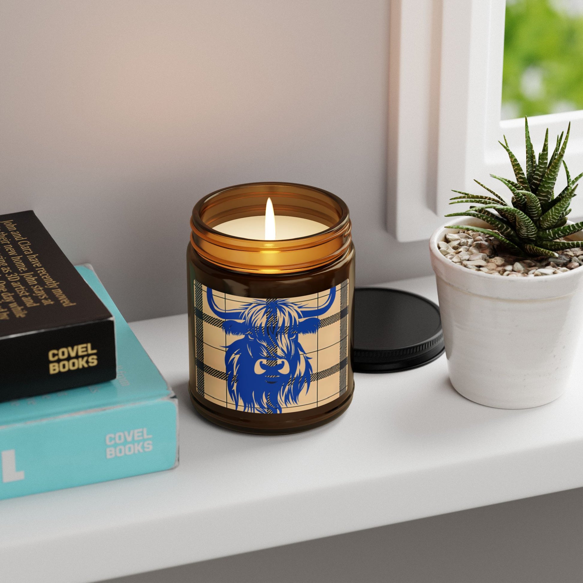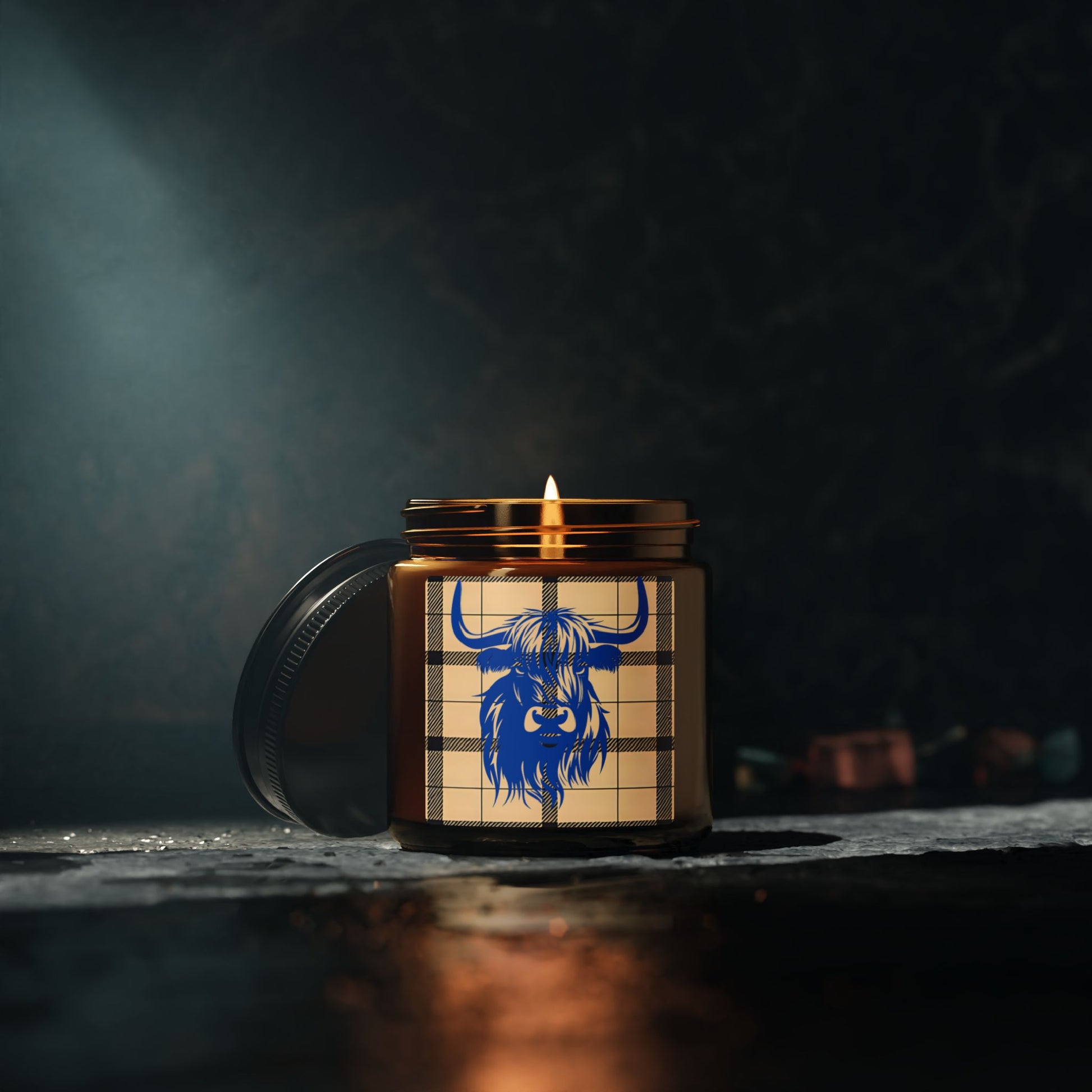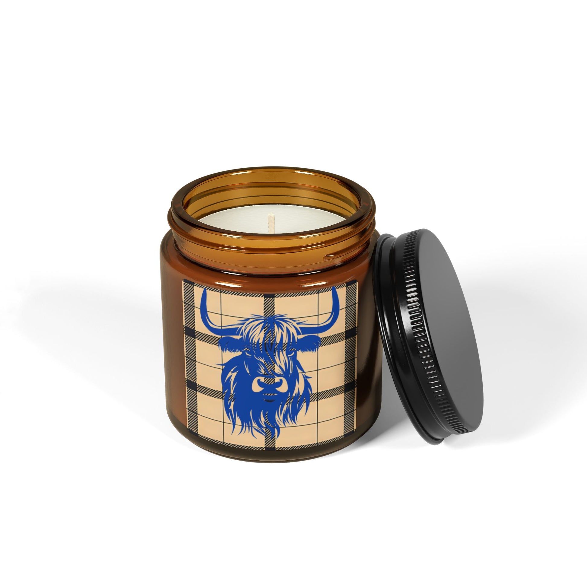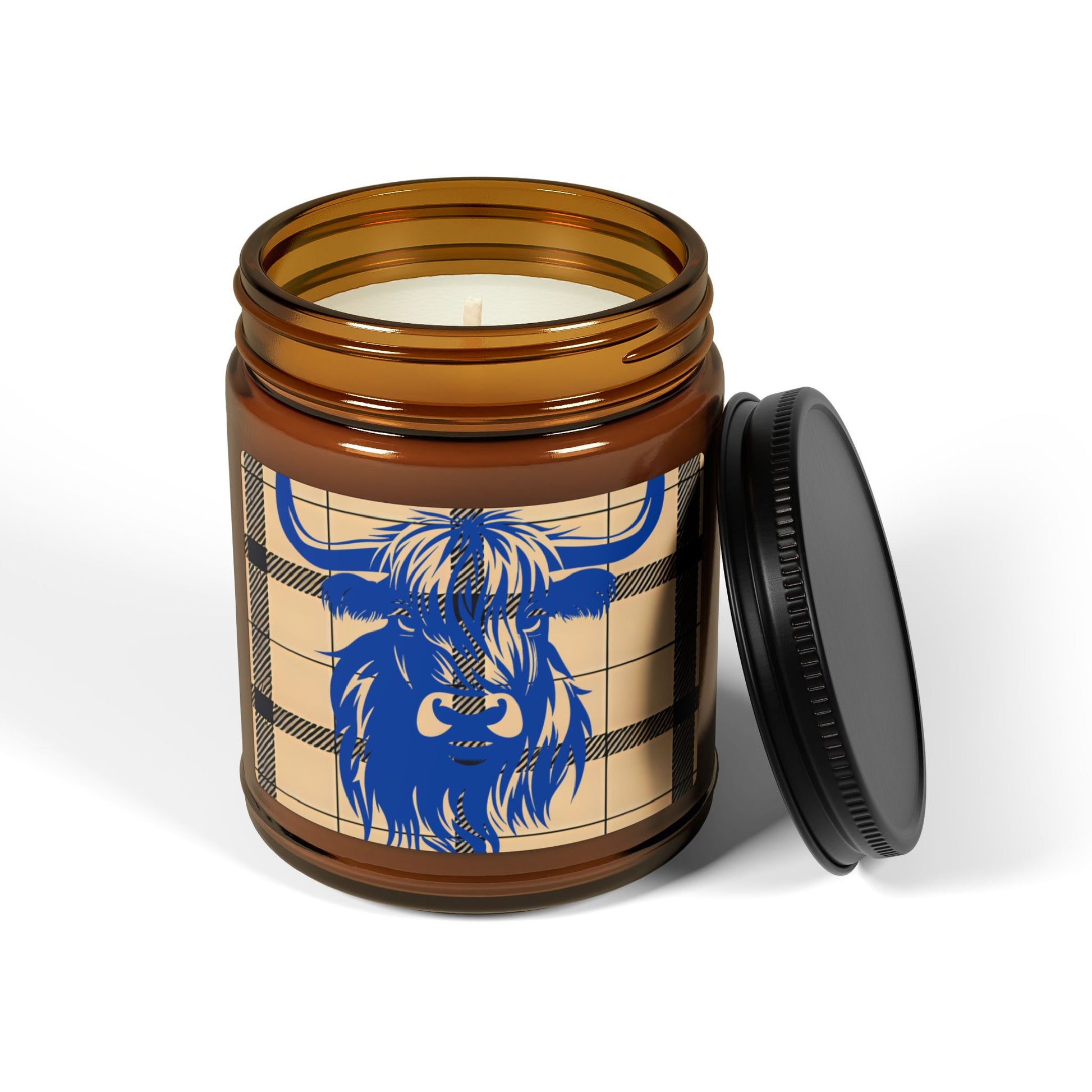 Rustic Highland Cow Candle, Cozy Home Decor, Gift for Him or Her, Scented Soy Wax Jar, Farmhouse Aesthetic, Amber Jar Candle