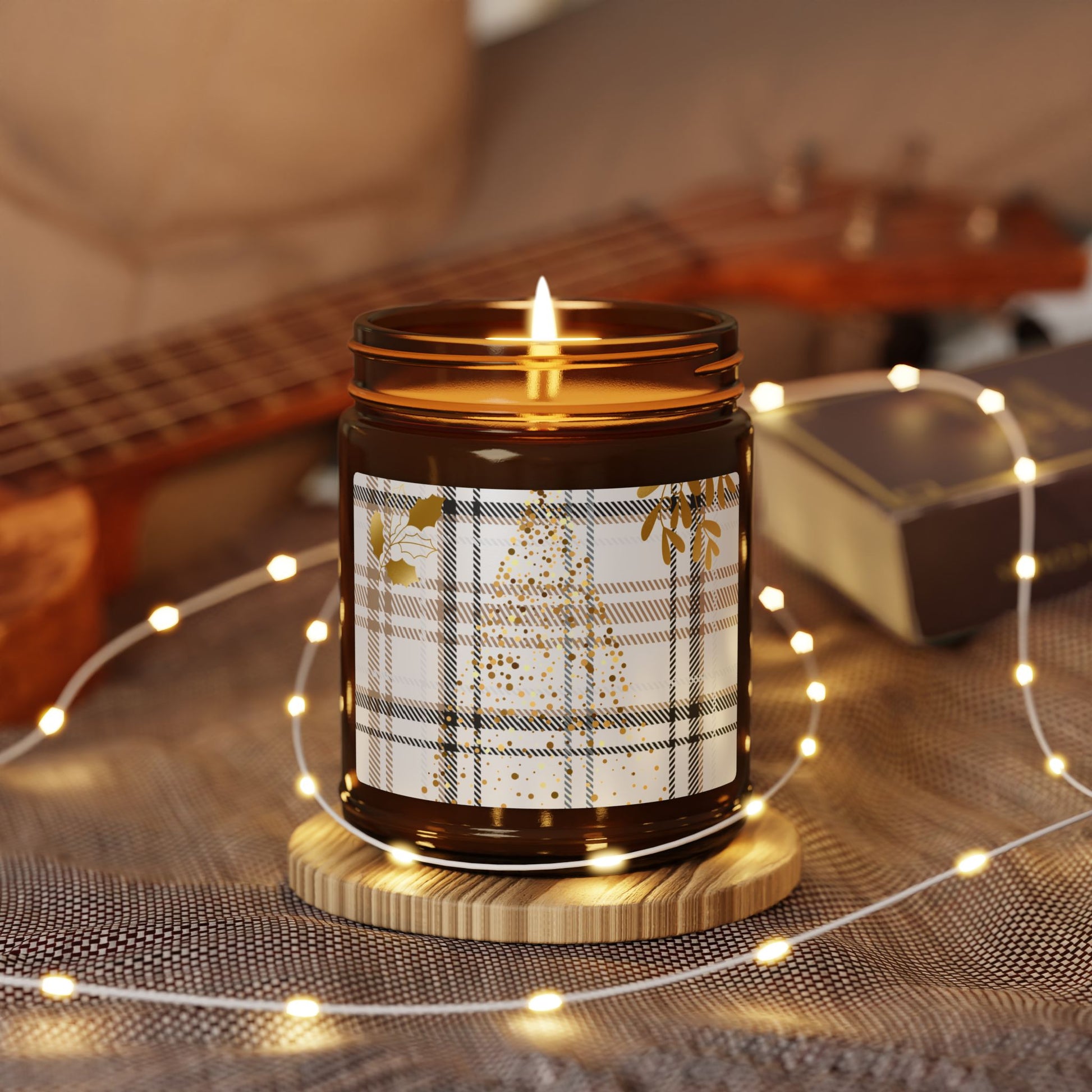 Soy Amber Jar Candle — Cozy Plaid Winter Tree Scented Candle (Multi-Size)