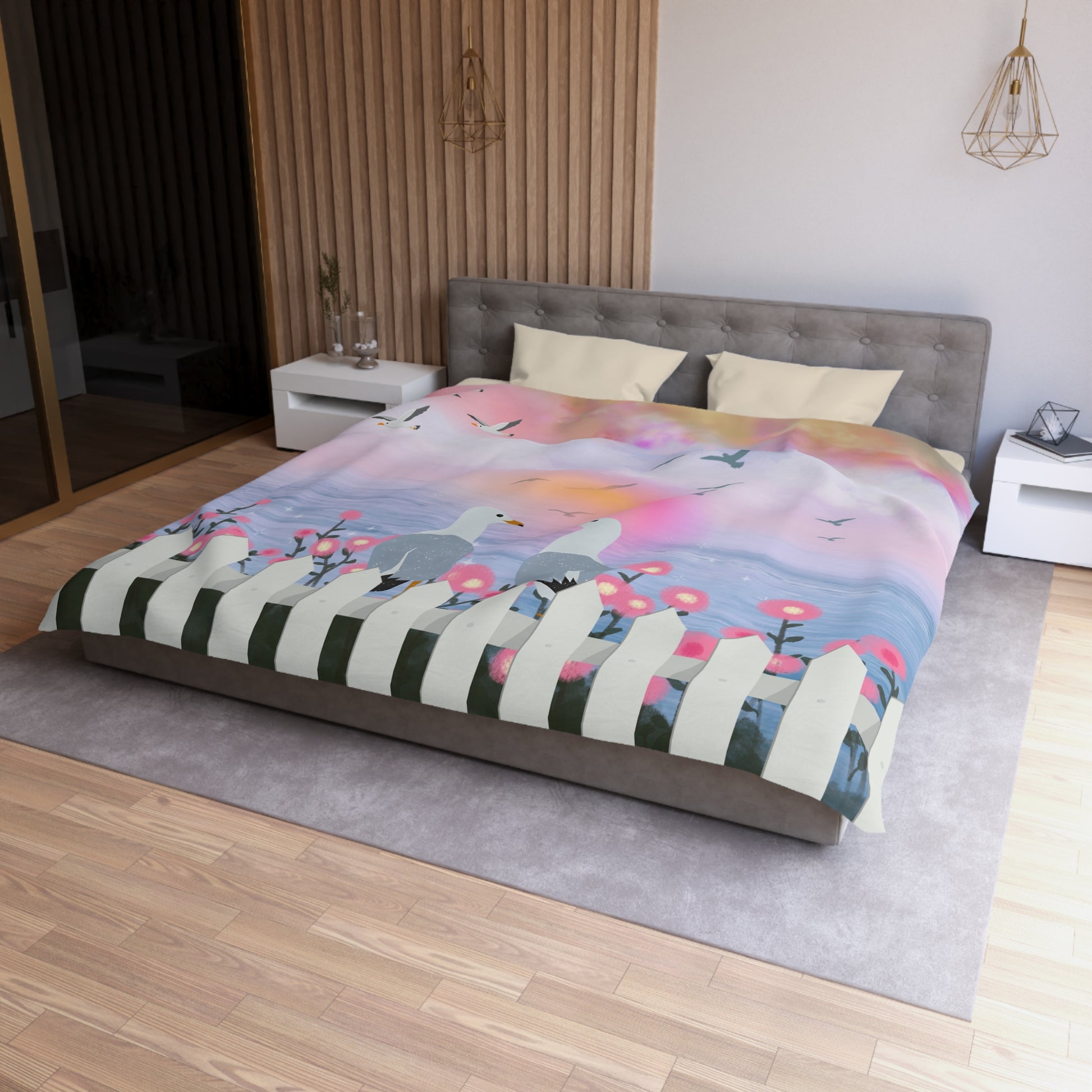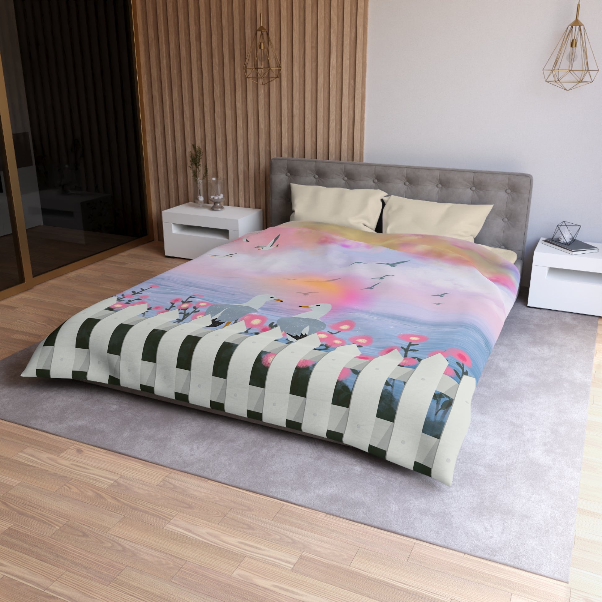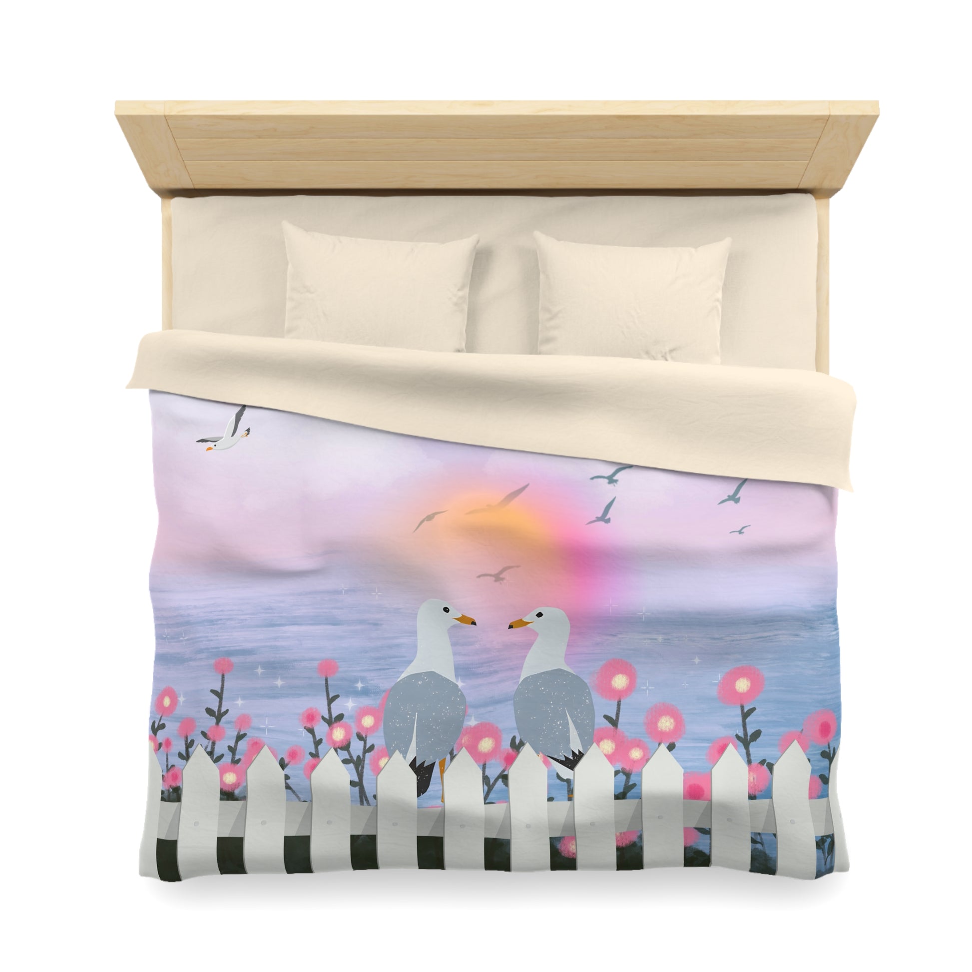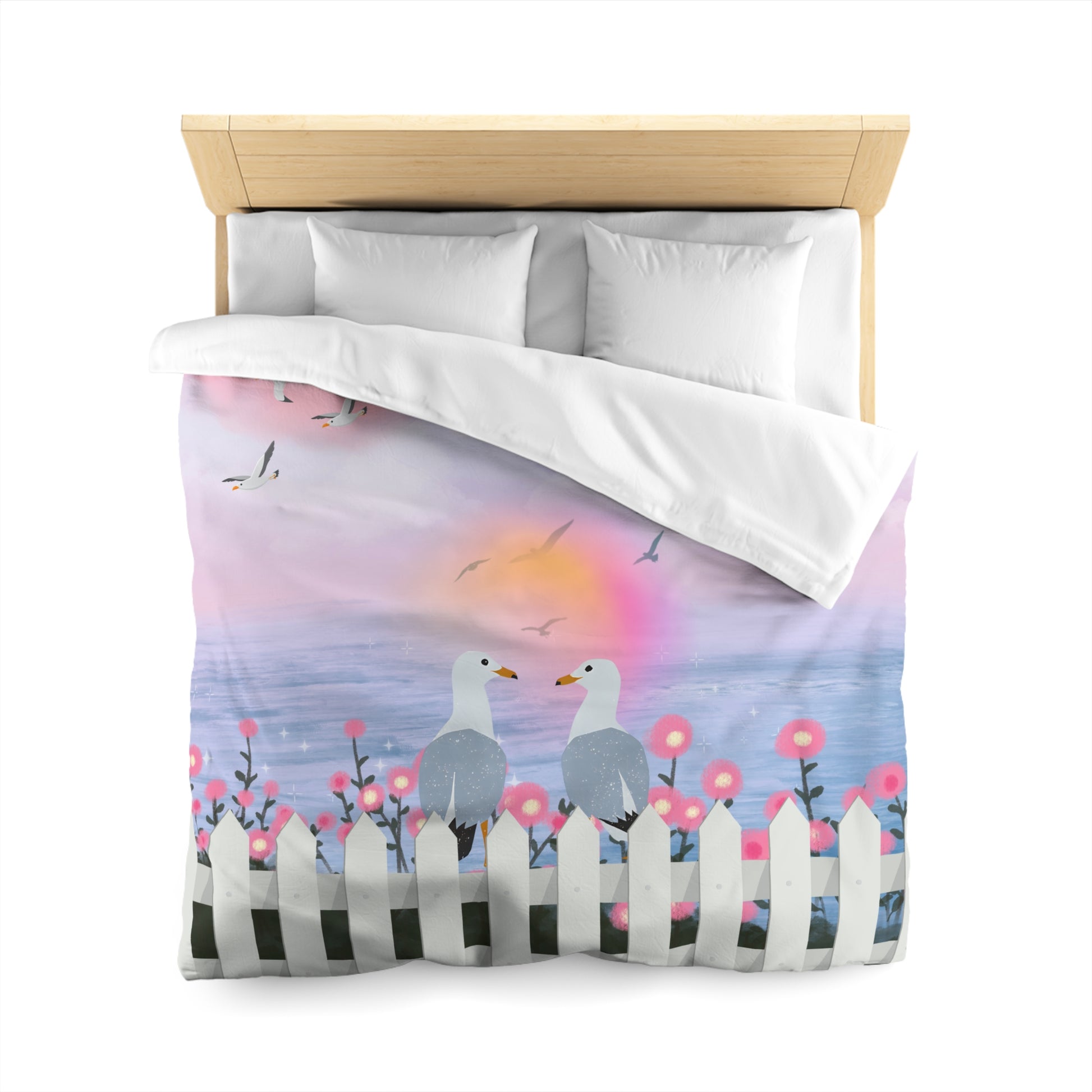 Serene Seagull Microfiber Duvet Cover, Beach Decor, Coastal Bedding, Nautical Bedroom, Pastel Bedspread, Gift for Sea Lovers